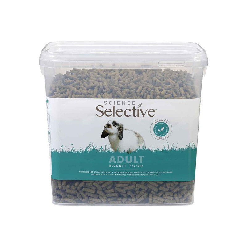 Un lapin adulte de taille moyenne (2,5 kg) aura besoin de 60-70g/jour de Selective Rabbit.