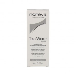 La crème dépigmentante intensive de nuit Trio White de Noreva est indiquée pour éliminer les taches brunes de la peau au niveau du visage, des mains ou du décolleté, causées par les rayons solaires et le vieillissement cutané.