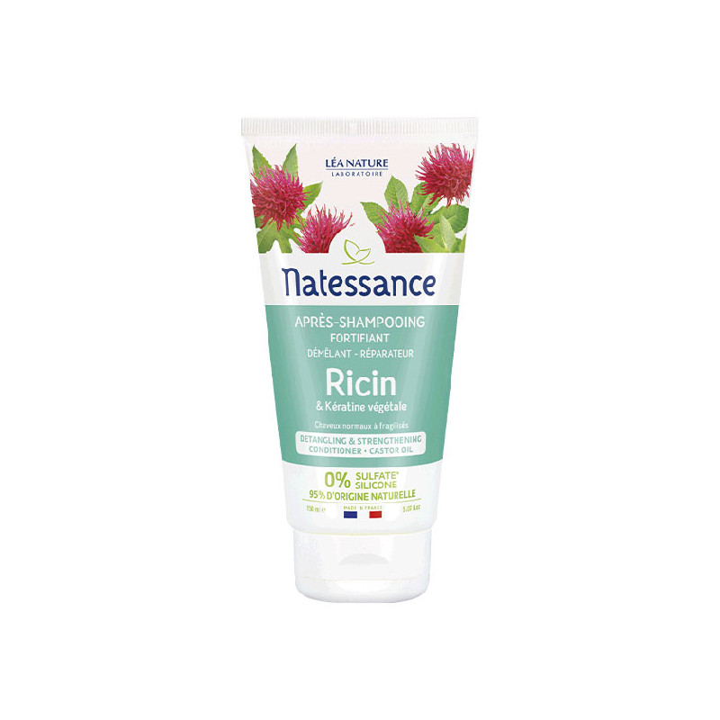 Cet après-shampooing complète l’action du shampooing réparateur fortifiant Ricin Natessance.