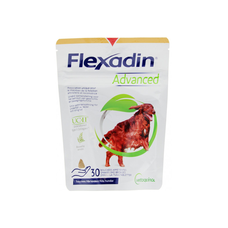 Flexadin Advanced se présente sous forme de bouchées appétentes pour une administration facile 1 fois par jour.