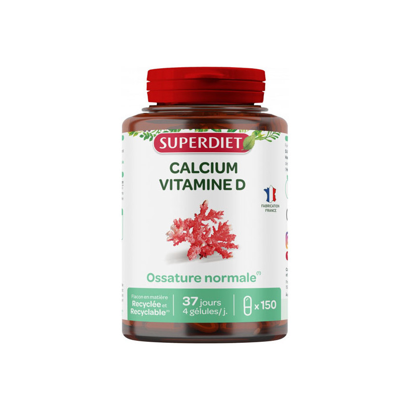 - Calcium issu du Lithothamme, une petite algue rouge. Le Calcium est nécessaire au maintien d’une ossature normale.