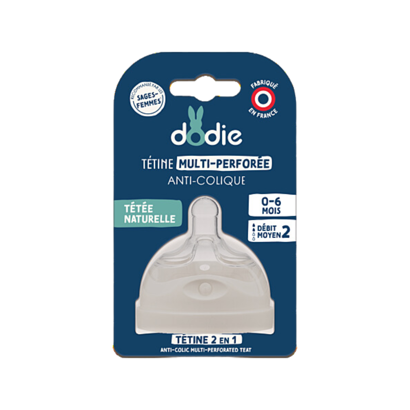 Dodie Tétine Multi-Perforée Anti-Colique Débit Lent 0-6 Mois est une tétine dont :