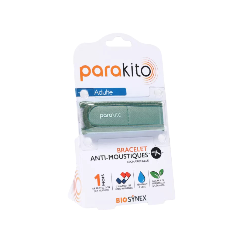 Bracelet Parakito libèrent une odeur qui confond les moustiques, les empêchant de nous trouver et de nous piquer , grâce à la diffusion d'un mélange d'huiles essentielles spécialement développé pour masquer les odeurs corporelles humain