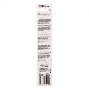 Gum Ortho Brosse à dents souple possède une tête compacte avec des brins coupés en V s'adaptant au fil métallique et aux brackets de l'appareil orthodontique.