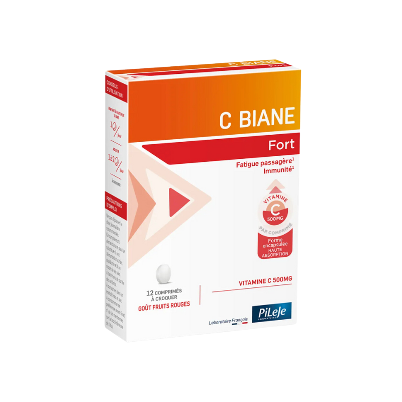 Pour les personnes souhaitant un apport important en vitamine C, le laboratoire PiLeJe a ainsi développé une solution nutritionnelle à base de vitamine C sous forme encapsulée : C Biane Fort.
