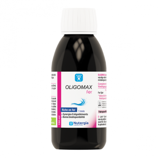 OLiGOMAX fer est l’association d’un extrait français breveté d’algue lithothamne et d’un concentré d’eau de mer désodée, qui apporte tous les oligoéléments, et enrichie en fer.