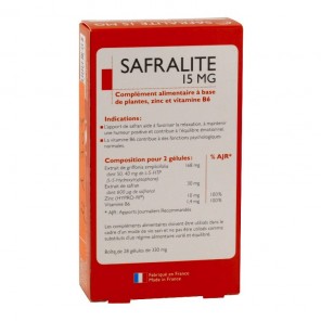 Safran : Safralite® inhibe la recapture de la sérotonine, hormone impliquée dans la régulation de l’humeur mais également de l’appétit et du sommeil grâce au safranal et à la crocine apporté par le safran L-5-HTP (L-5-Hydroxyryptophane) : Safralite® stimule la synthèse de sérotonine grâce à l’apport de son précurseur direct le L-5-HTP extrait de griffonia simplicifolia. Le L-5-HTP présente une excellente biodisponibilité cérébrale permettant ainsi une synthèse efficace de sérontonine contrairement au tryptophane libre. Pour une efficacité optimale, Safralite® apporte également de la vitamine B6 qui est le co-facteur essentiel dans la synthèse de sérotonine à partir du L-5-HTP et du zinc (chélaté HYPRO-RI®).