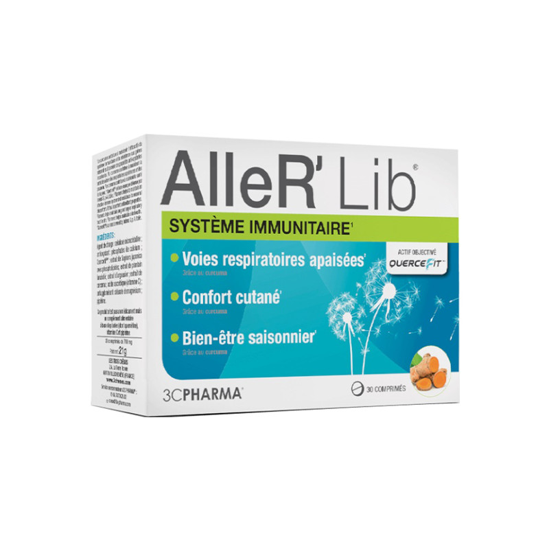 ALLER'LIB propose une formule experte à base de plantes, de quercétine objectivée : Quercéfit, de pipérine et vitamine C, permettant de maintenir un bon système immunitaire1 et de faire face aux gênes saisonnières1 .
