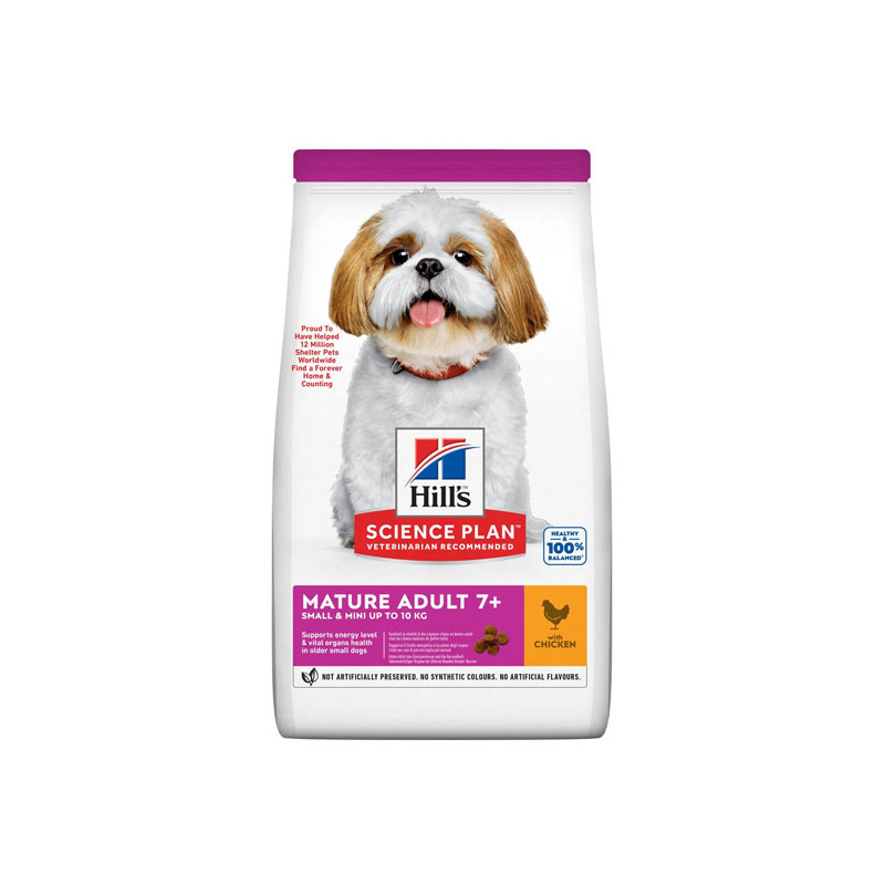 Hill's Science Plan ALIMENT pour CHIEN ADULTE MATURE SMALL & MINI au POULET (poulet 8 % ; total volaille 13 %) est un aliment complet pour les chiens de petite race de 7 à 10 ans.