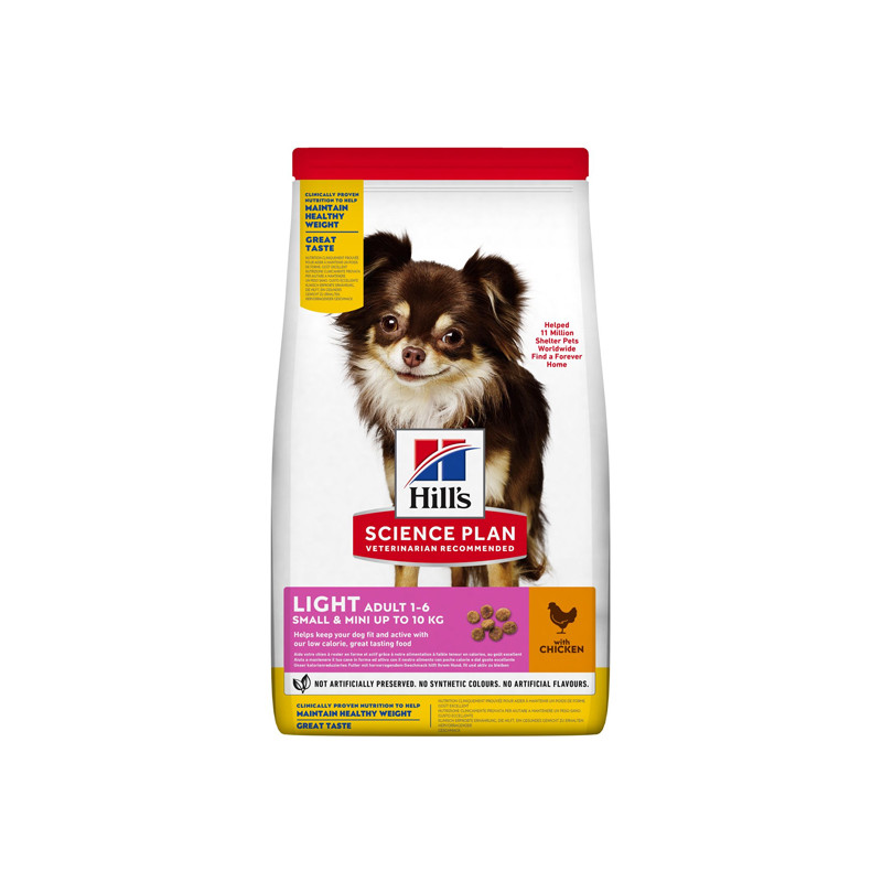 Les croquettes pour chien Hill's SCIENCE PLAN Light Small & Mini Adult sont conçues pour les petits chiens adultes moins actifs qui ont besoin d'une alimentation hypocalorique pour les aider à maintenir un poids et un mode de vie sains.