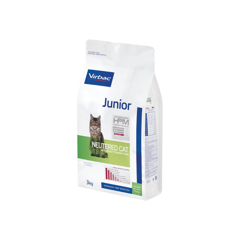 C’est ce que permet VETERINARY HPM JUNIOR NEUTERED CAT, riche en protéines animales, pauvre en glucides et enrichi en ingrédients spécifiques.