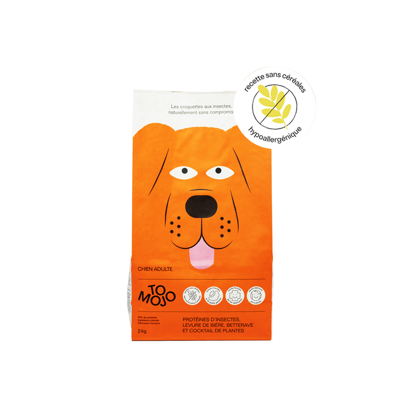 Composée d’une seule source de protéines animales et élaborée avec des ingrédients gourmands et hautement digestibles (farine d’insectes, pois, pulpe de betterave), notre recette pour chien adulte est adaptée aux systèmes digestifs sensibles. .