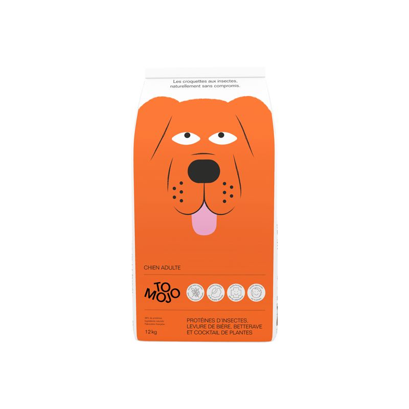 Composée d’une seule source de protéines animales et élaborée avec des ingrédients gourmands et hautement digestibles (farine d’insectes, pois, pulpe de betterave), notre recette pour chien adulte est adaptée aux systèmes digestifs sensibles. .
