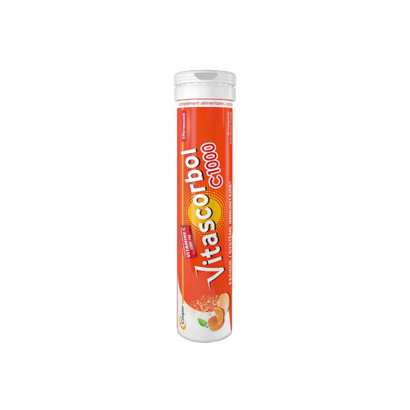 VitascorbolC1000 est un complément alimentaire sous forme de comprimés, à dissoudre chaque matin dans un demi-verre d’eau.