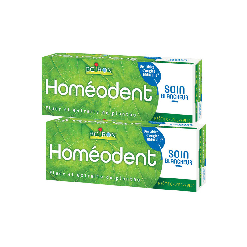 Le soin blancheur Homéodent® propose une formule unique, au fluor (1450ppm de fluor) et aux extraits de plantes soigneusement sélectionnées, qui aide à retrouver la blancheur naturelle des dents, avec un effet protecteur sur l'émail.