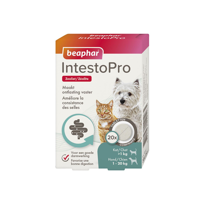 Les comprimés IntestoPro de Beaphar aident à soulager les troubles gastro-intestinaux des chiens dès l’âge de 8 semaines.