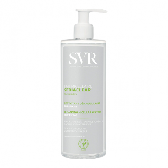 Sébiaclear Eau Micellaire purifie, nettoie et démaquille en un seul geste, même le maquillage waterproof.