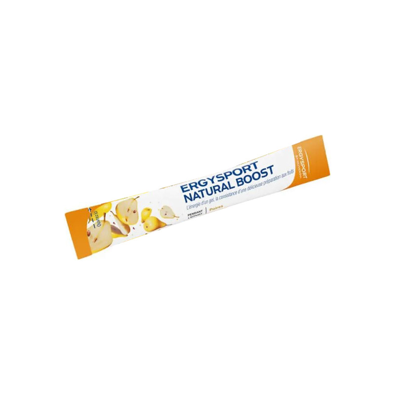 Ergysport Natural Boost est un gel à base de purée de fruits vitaminée. Elle apporte l'énergie d'un gel grâce aux sucres des fruits.