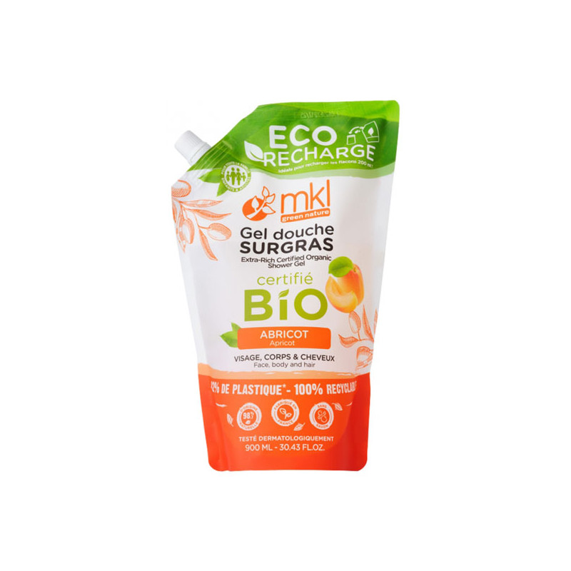 Nos gels douche surgras certifiés Bio se transforment en éco-recharge de 900 ml.