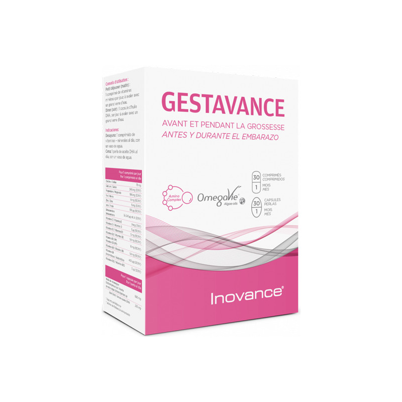Comprimé Vitamines – Minéraux : Carbonate de Calcium, Oxyde de Magnésium, Bitartrate de Choline Microencapsulé, Agent de Charge : Cellulose Microcristalline, Bisglycinate Ferreux, Hydrolysat de Protéines de Riz, Acide Ptéroylmonoglutamique (Vitamine B9), Antiagglomérants : Sels de Magnésium d'acides Gras et Carboxyméthylcellulose de Sodium Réticulée, Gluconate de Zinc, Enrobage (Agents d'enrobage : Hydroxypropylméthylcellulose, Cellulose Microcristalline, Acides Gras), Nicotinamide (Vitamine B3), Succinate de D-alpha-tocophéryle (Vitamine E), Émulsifiant : Mono et Diglycérides d'acides Gras, Bêta-carotène (Vitamine A), Cyanocobalamine (Vitamine B12), Cholécalciférol (Vitamine D), Chlorhydrate de Pyridoxine (Vitamine B6), Chlorhydrate de Thiamine (Vitamine B1), Riboflavine (Vitamine B2), Iodure de Potassium