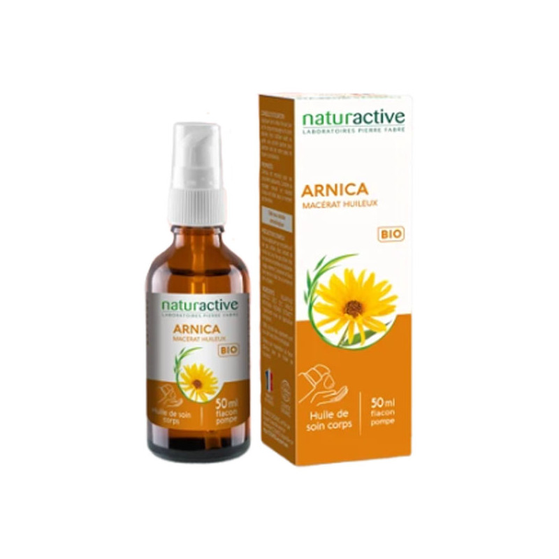 Constituants principaux : huile de tournesol - acides oléique (oméga 9) et linoléique (oméga 6), acides palmitique et stéarique ; Arnica - lactones sesquiterpéniques (hélénaline).