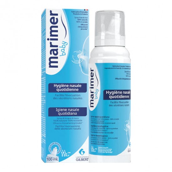 MARIMER BABY Hygiène nasale est un spray d’eau de mer 100% naturelle, riche en sels minéraux et oligo-éléments marins. Il peut être utilisé au quotidien à des fins préventives grâce à sa concentration physiologique (isotonique - 9‰). Sa micro-diffusion permet une application douce et homogène sur la muqueuse. Son large embout de sécurité conçu pour les nourrissons (hors prématurés) et les jeunes enfants assure une administration facile et en toute sécurité. Sa valve anti-retour est conçue pour éviter tout risque de contamination extérieure et assure la protection de la solution.
