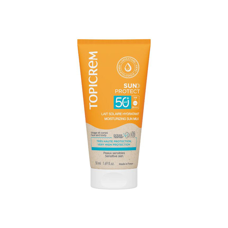 SUN PROTECT Lait Solaire Hydratant SPF50+ protège les peaux sensibles de toute la famille dès 3 ans, grâce à des filtres solaires organiques à large spectre UVA/UVB, pour une très haute protection SPF50+.