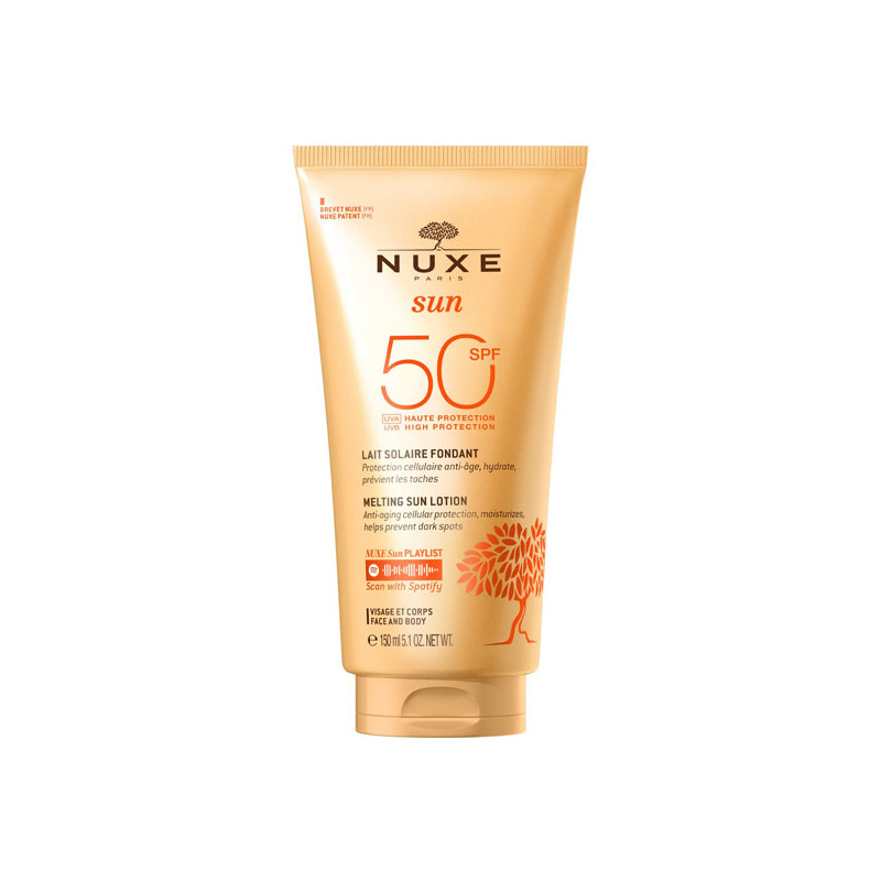 Ce Lait Solaire SPF50 visage et corps assure une protection large spectre contre les UVA et les UVB.
