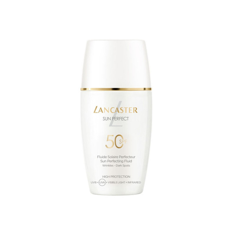 Le fluide solaire perfecteur SPF 50 Sun Perfect offre la technologie Full Light exclusive et avancée de Lancaster, qui cible 100 % du spectre solaire*, ainsi que la technologie Anti-âge, le système Sun Repair d’origine naturelle et le complexe Booster d’Éclat.