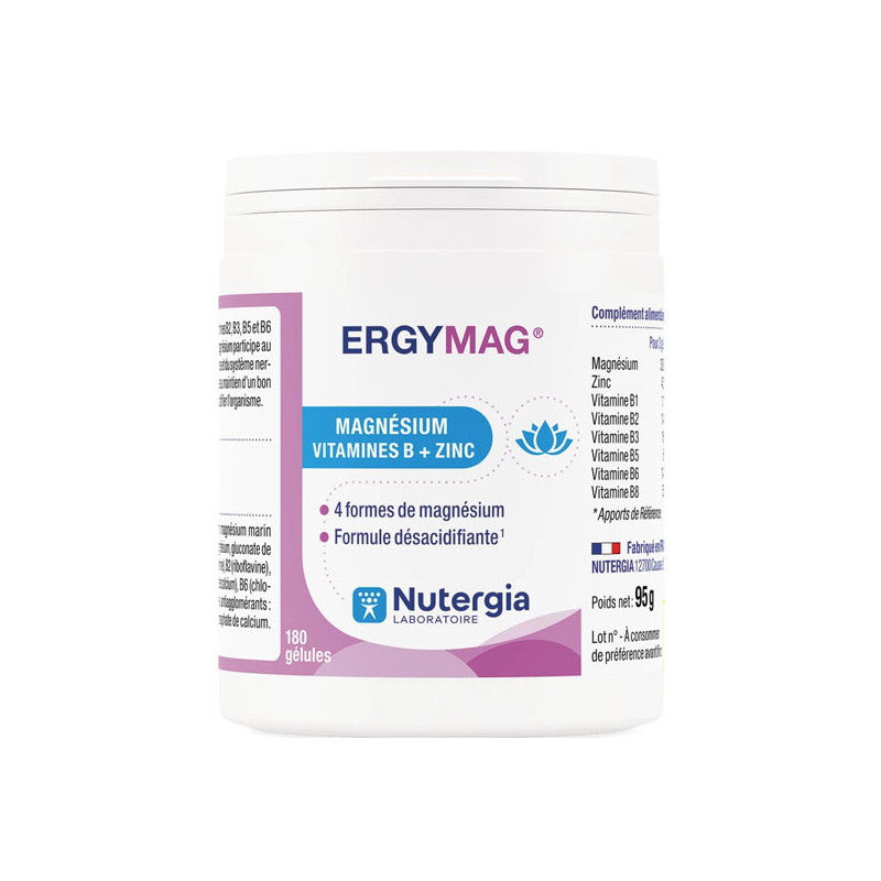 ERGYMAG est riche en 4 formes de magnésium, vitamines B2, B3, B5 et B6 qui contribuent à réduire la fatigue et à un métabolisme énergétique normal. Le magnésium participe aussi au maintien du bon fonctionnement du système musculaire.