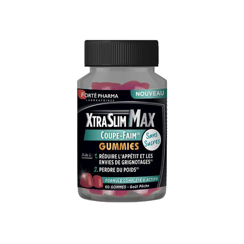 XtraSlim Max Coupe-Faim Gummies ce sont des gommes à mâcher au bon goût pêche qui vous aide à réduire votre appétit et vos envies de grignotages tout en activant votre perte de poids grâce à la caroube.