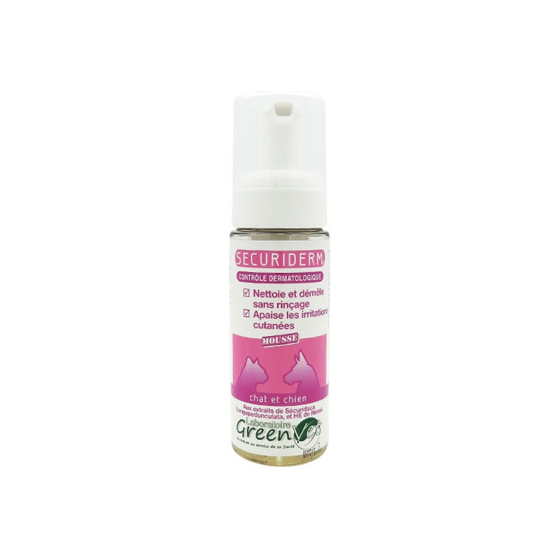 SECURIDERM Mousse est un soin nettoyant, démêlant, apaisant, sans rinçage pour usage fréquent.