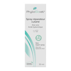 Le spray réparateur cutané Phytobiovet à l’aloe vera et à l’extrait de bourgeon de hêtre bio est riche en actifs apaisants, régénérants et hydratants.