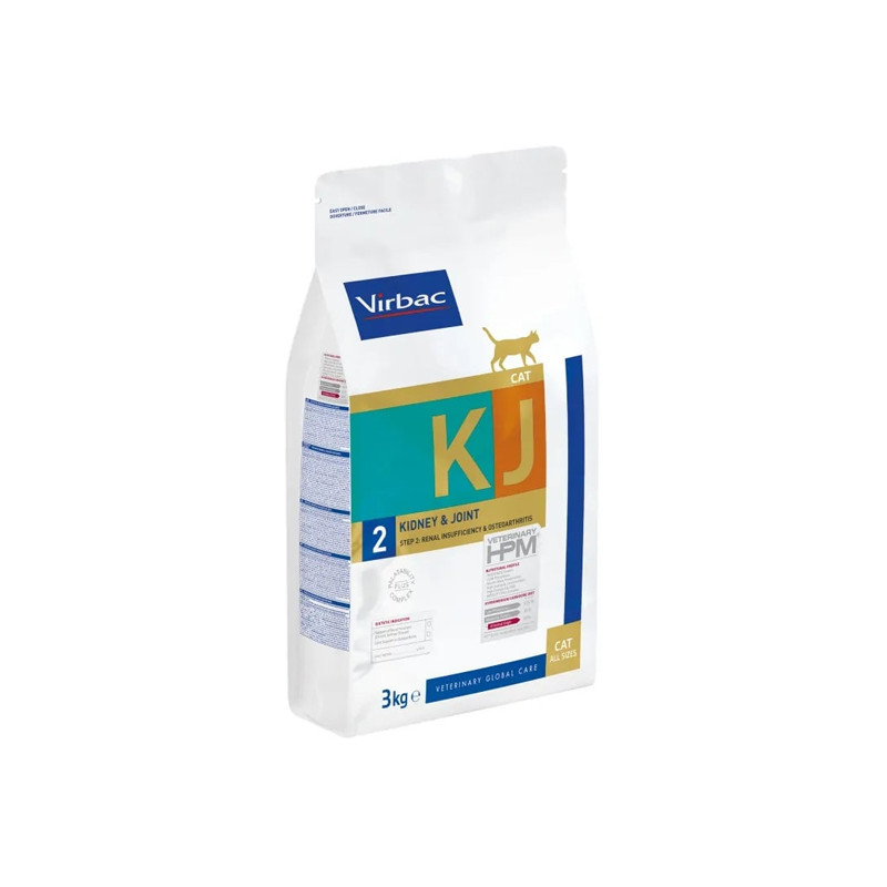 - VETERINARY HPM CAT KJ2 KIDNEY & JOINT permet une prise en charge nutritionnelle globale des chats souffrant d’insuffisance rénale au stade intermédiaire, tout en soutenant la fonction articulaire.
