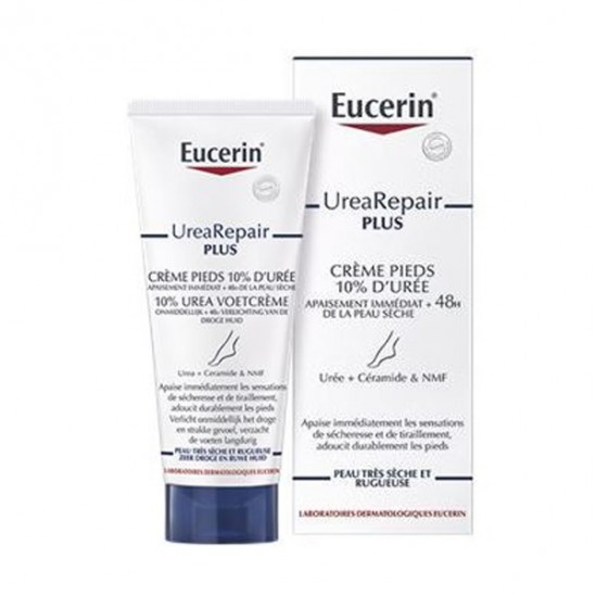 EUCERIN UreaRepair PLUS Crème Pieds 10% d'urée offre un soin intensif aux pieds secs à très secs, avec ou sans talon fendillé. Enrichie en urée et en lactate, elle garantit une hydratation longue durée même sur les peaux sèches et craquelées. Elle agit rapidement pour apaiser la sécheresse cutanée et l'inconfort et laisse les pieds doux et souples.