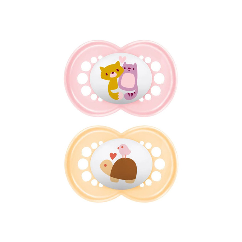 Disponibles en silicone MAM SkinSoft, ces sucettes sont livrées avec une boîte de transport pratique permettant une stérilisation rapide et simple au micro-ondes.