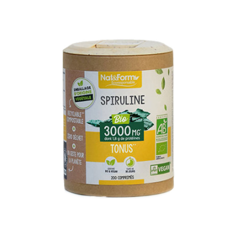 La spiruline n’est pas une plante mais un micro-organisme de la famille des cyanobactéries. Cette microalgue d’eau douce est un véritable concentré de nutriments. Riche en protéines (minimum 60%) et en phycocyanine (antioxydant), elle contient d’autres nutriments utiles notamment pour améliorer le tonus et la vitalité.