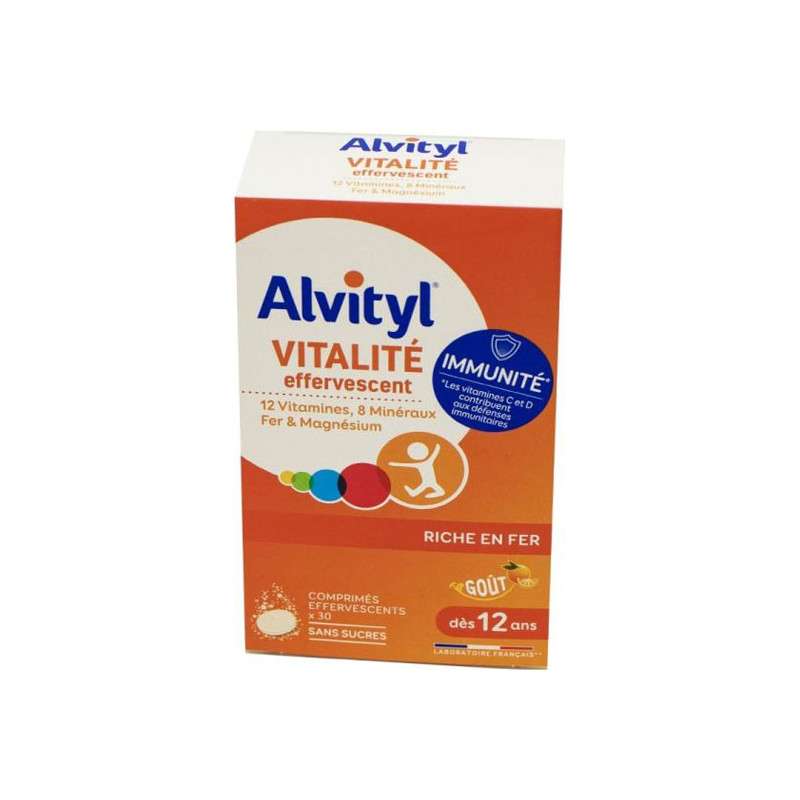 Alvityl Vitalité effervescent est une formule complète de 12 vitamines et 10 minéraux adaptée pour les pré-adolescents dès 12 ans et pour les plus grands.