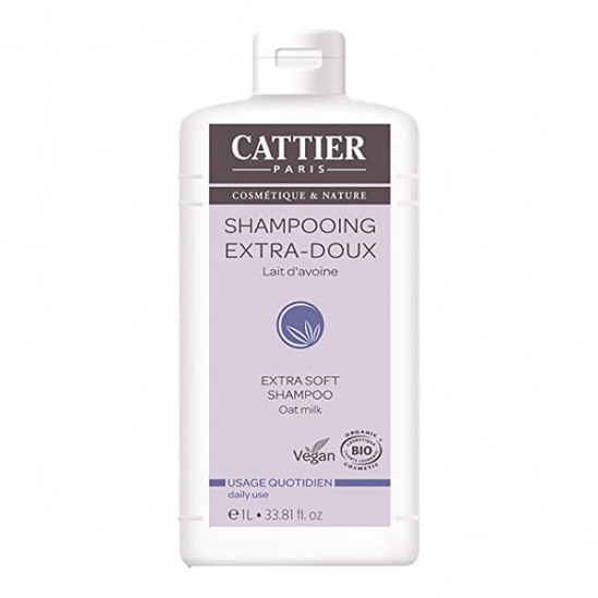 Le Shampoing extra-doux Cattier certifié bio au lait d'avoine et aux huiles essentielles apporte douceur et brillance à tous les types de cheveux. Il les fortifie et facilite leur démêlage. Sa formule ultra-douce, au pH équilibré, permet un usage quotidien.