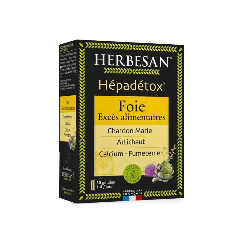 Lendemain de fête, repas riches et copieux, Hépadétox est une formule complète avec 3 plantes dont du chardon marie titré en silymarine et du calcium.