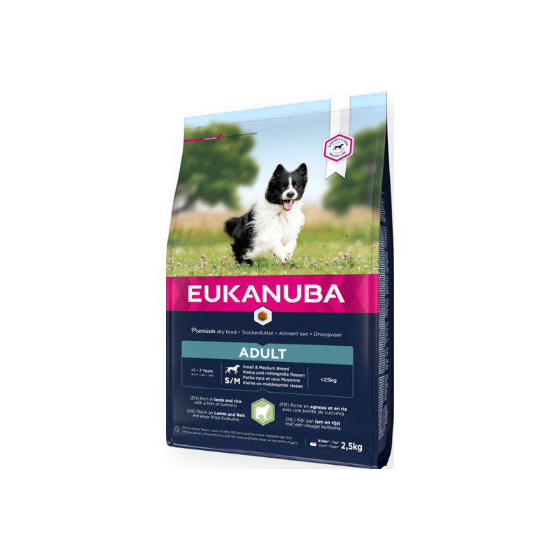 Avec beaucoup d'agneau et de riz, Eukanuba est idéal pour les chiens adultes de petites et moyennes races tels que les teckels, les colleys, les carlins et les cockers.